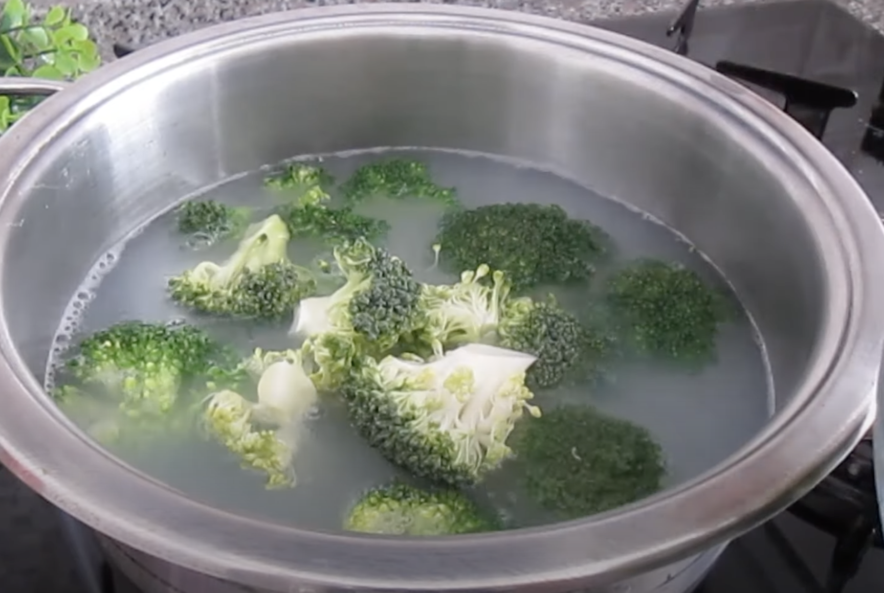 Brokuł podziel na różyczki i gotuj kilka minut w osolonej wodzie z łyżką mleka.