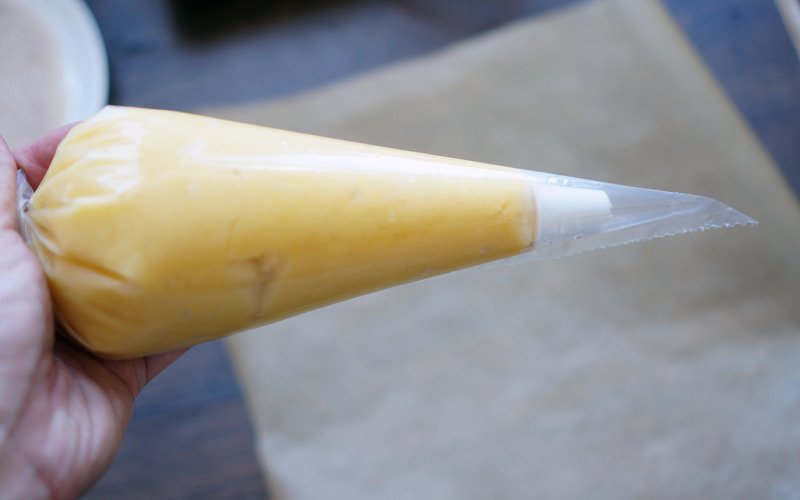 Powstałe ciasto przełóż do rękawa cukierniczego i obetnij końcówkę.