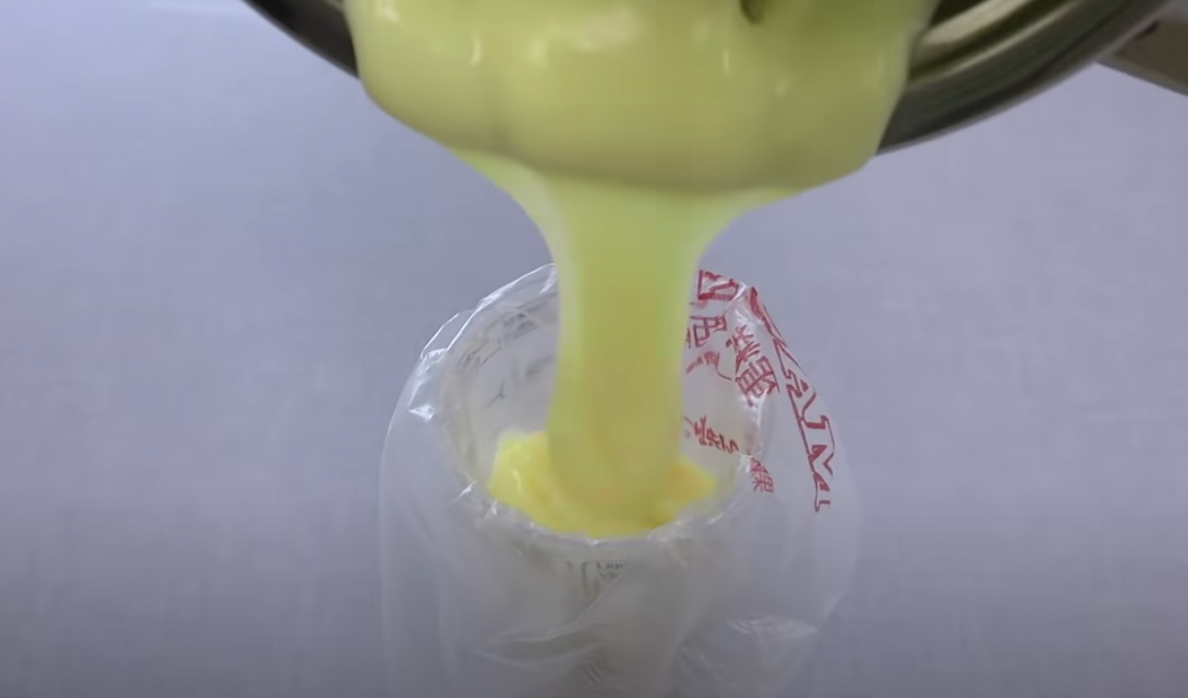 Najpierw przygotowujemy krem. Jajka gotujemy z cukrem, skrobią i mlekiem. Gotujemy gęsty budyń. Schłodzoną masę przykrywamy folią spożywczą i odstawiamy na bok.