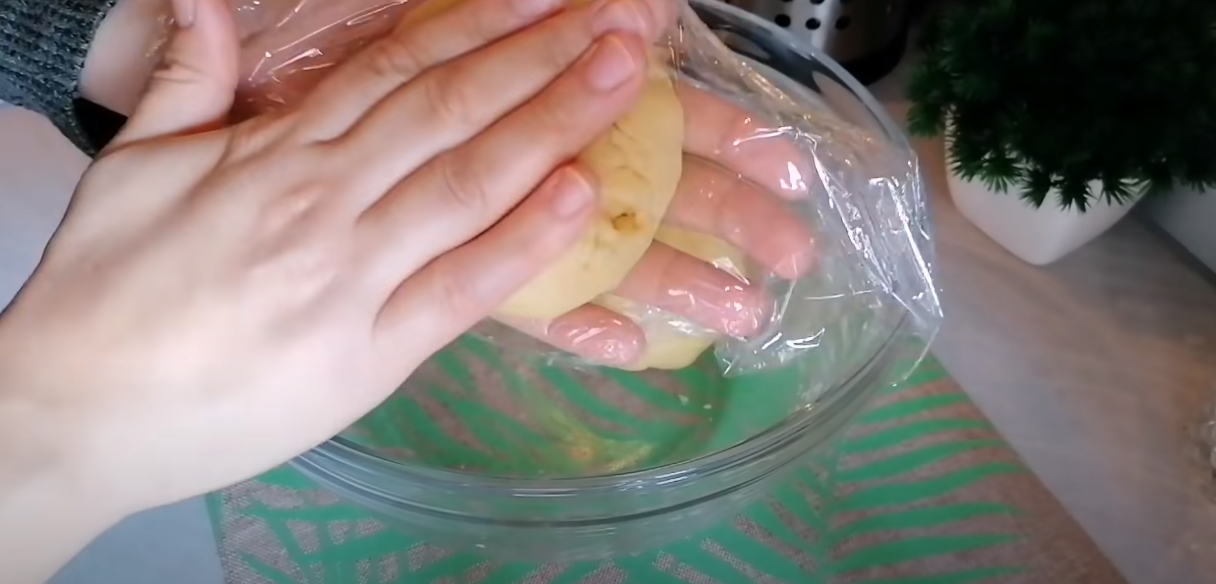 Składniki połącz tak, by powstała jednolita masa, a następnie ciasto podziel na dwie połówki i umieść w zamrażalniku na pół godziny, ale uprzednio zawiń ciasto w folią spożywczą.