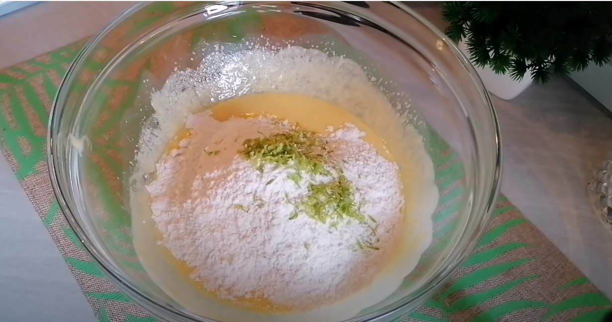 Do tej masy dodaj mąką, a także startą skórkę cytryny oraz sól i proszek do pieczenia.