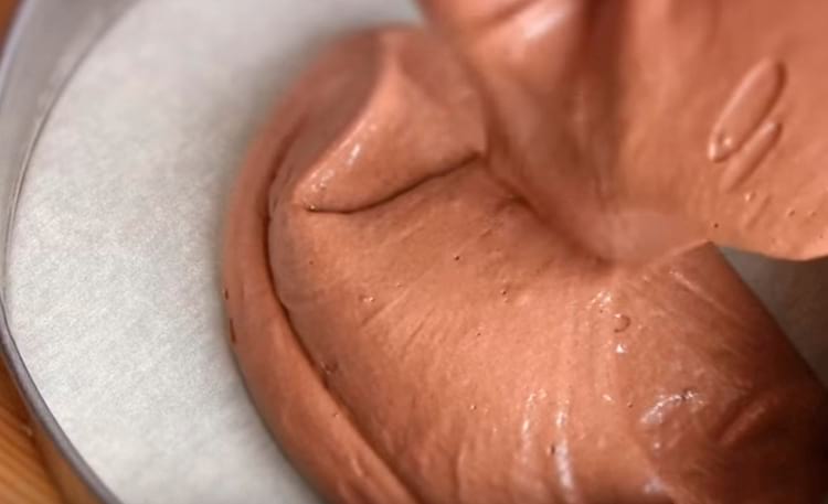 Przygotować tortownicę, dno wyłożyć papierem do pieczenia, ścianki natłuścić i posypać gruboziarnistą mąką. Wlej przygotowane ciasto do formy, wyrównaj powierzchnię, lekko stukając foremką o blat i piecz w nagrzanym piekarniku przez około 30 minut. Dokładny czas pieczenia zależy od specyfiki Twojego piekarnika, więc sprawdź wykałaczką. Jeśli pozostanie suche i nieklejące się, możesz wyjąć ciasto z piekarnika.