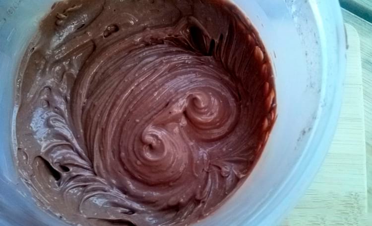 Do miski wlej dwie i pół szklanki śmietanki i dodaj do niej pół łyżeczki sody oczyszczonej. Dobrze wymieszaj i dodaj żółtka, pół puszki skondensowanego mleka, trzy łyżeczki kakao w proszku i dokładnie wymieszaj. Do masy stopniowo dodawać przesianą mąkę. Po uzyskaniu gładkiej i jednolitej konsystencji, na koniec delikatnie wmieszaj do ciasta piankę  ze słodkiego jajka.