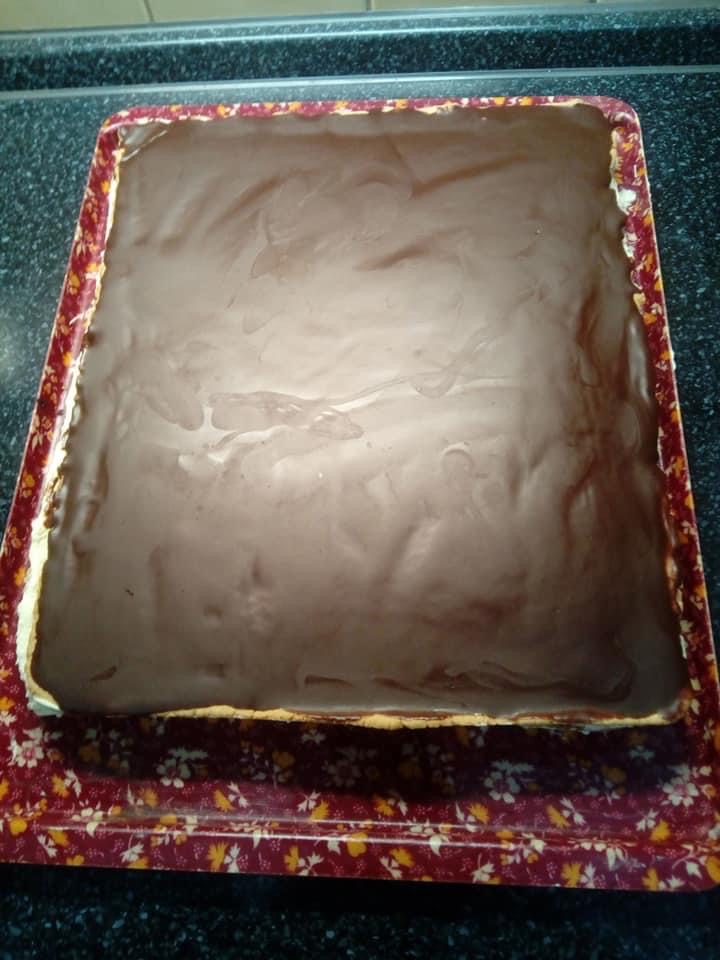 Następnie przygotowujemy nadzienie. Rozpuść pokruszoną czekoladę z wodą w kąpieli wodnej. Lekko ostudzić i polać ciastka.