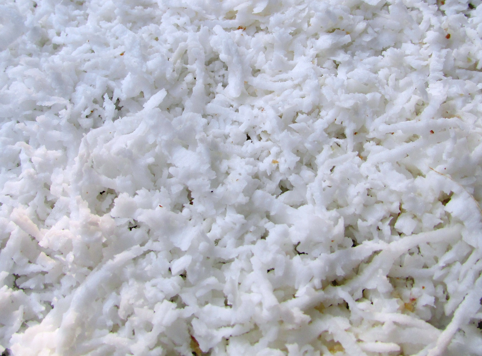 Białka ubić na sztywną pianę ze szczyptą soli. Stopniowo dodawać oba cukry. Do ubitej pianki wsypać zmielony mak i kokos i delikatnie wymieszać łyżką. Ciasto wylewamy na blaszkę wyłożoną papierem do pieczenia.