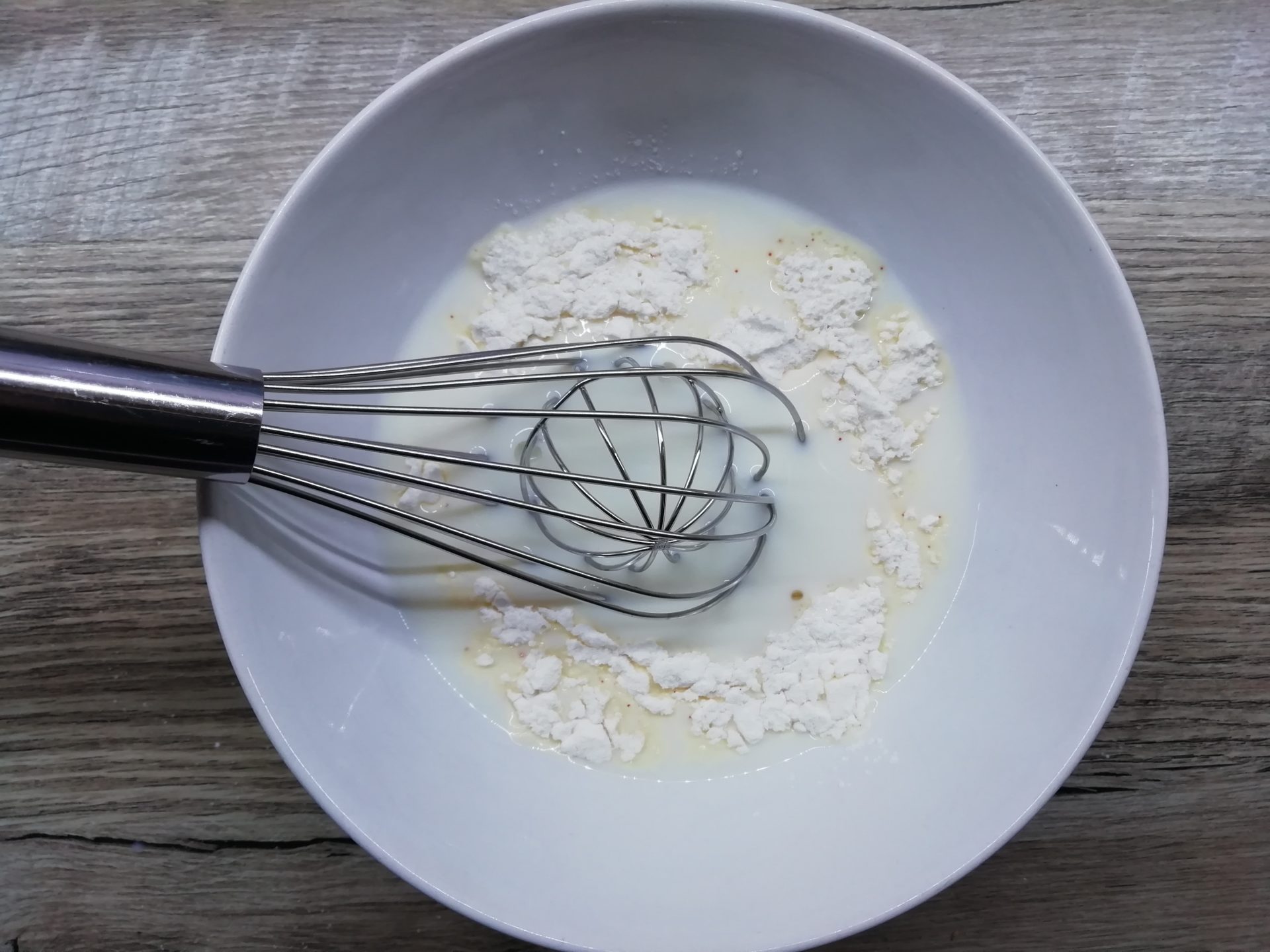 Zmiksować żółtka, mąkę, puddingi i 1/2 szklanki mleka na gładką masę. Resztę mleka zagotować z cukrem. Do wrzącego mleka powoli wlewać masę budyniową i szybko mieszać.