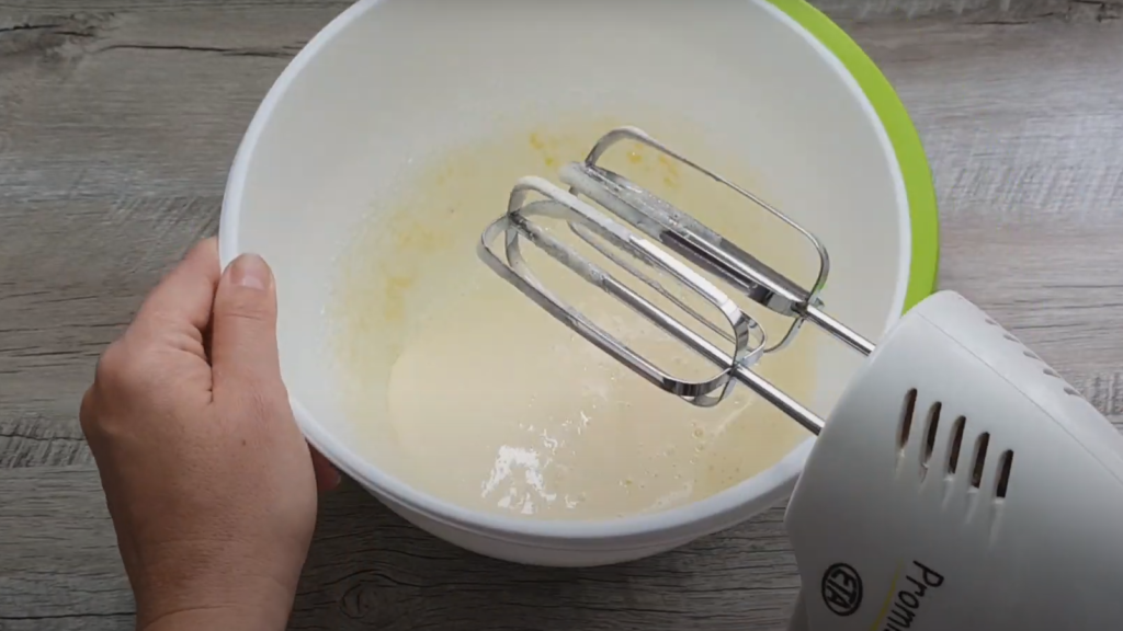 Jajka rozbić do miski, dodać sól i cukier i ubić mikserem.