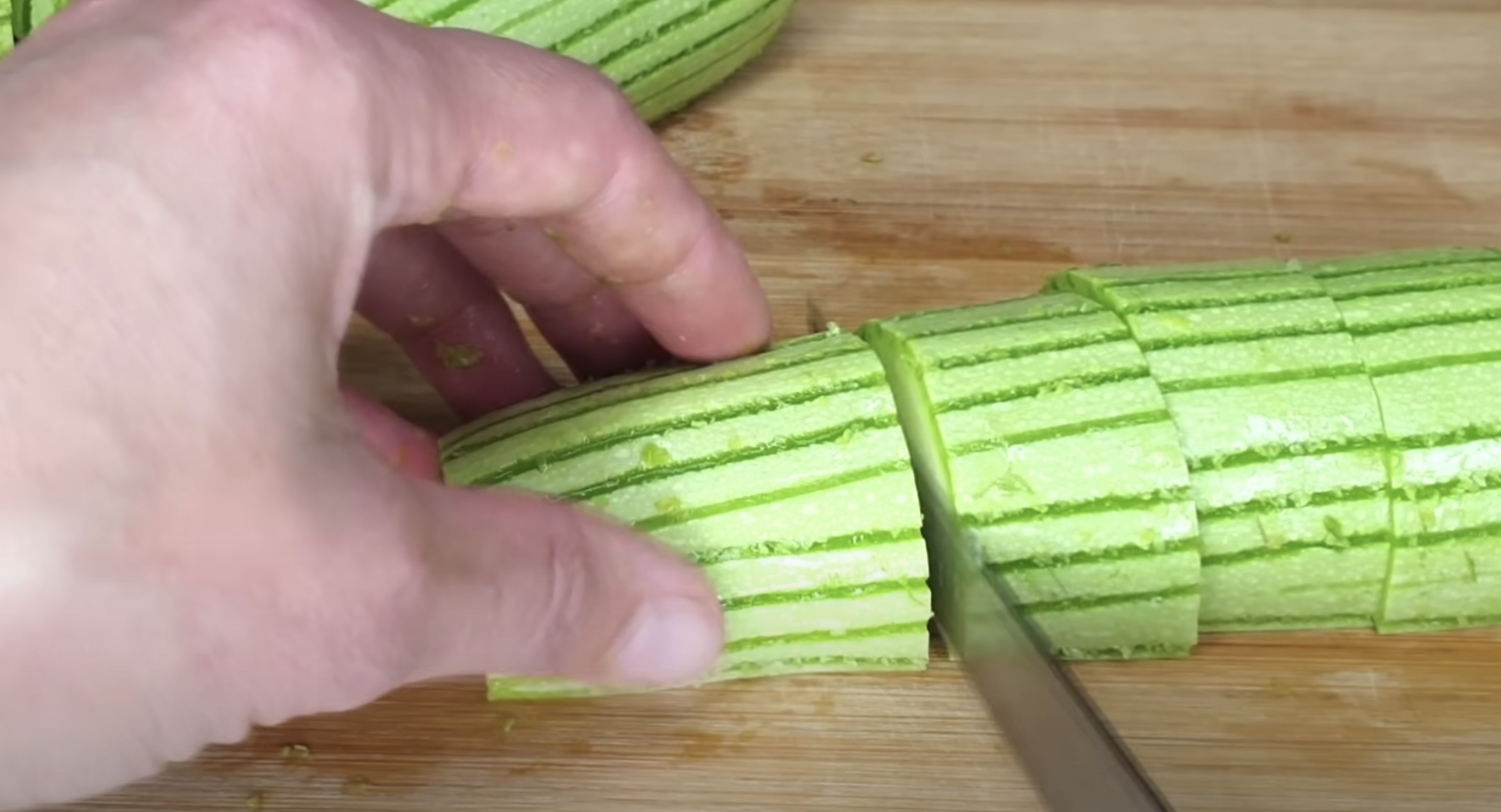 Zdejmij końcówki cukinii i za pomocą widelca lub noża zrób drobne rowki.
