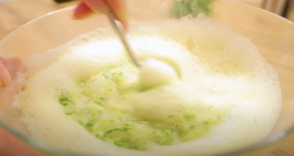 1 cukinię umyj i zetrzyj na drobnej tarce.