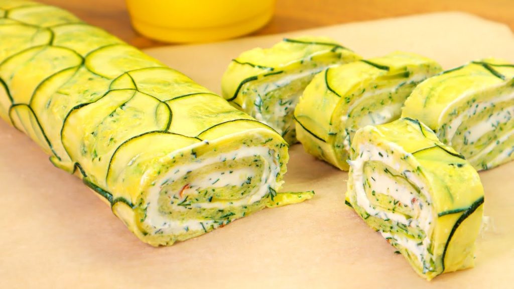 Raz dwa i gotowe. Pyszne roladki raz dwa na stole: 2 cukinie, jajka, ser, czosnek.