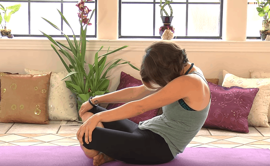 Usiądź na macie po turecku (nogi skrzyżowane), oddychaj głęboko pamiętając o rozluźnieniu.