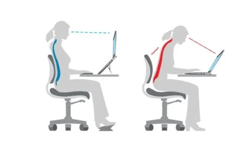 Pamiętaj, że jeśli pracujesz przy komputerze monitor powinien znajdować się na wysokości oczu, możliwie jak najbardziej na środku. Dzięki temu unikniesz pochylania się w jego kierunku i garbienia się. Biurko przy którym siedzisz powinno mieć odpowiednią do Twojego wzrostu wysokość, tak abyś mógł swobodnie opierać o nie łokcie pod kątem 90 stopni.