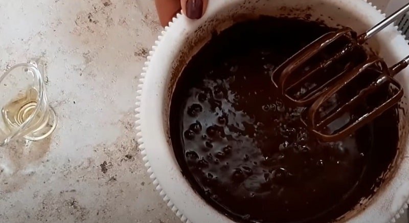 Następnie, magicznym sztyletem kuchni, rozpuść masło i wlej do ciasta. Olej roślinny dodaj również, a potem wymieszaj wszystko mikserem, aż masa stanie się gładka. Złóż sodę z octem, dodaj szczyptę soli i kontynuuj mieszanie przez minutę.