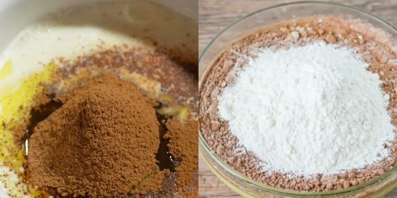 Do misi wysp kaszę manną, cukier, cukier wanilinowy dodaj wodę, wszystko dokładnie wymieszaj i odstaw na 2- 3 godziny. Po tym czasie do mieszanki dodaj olej oraz kakao.