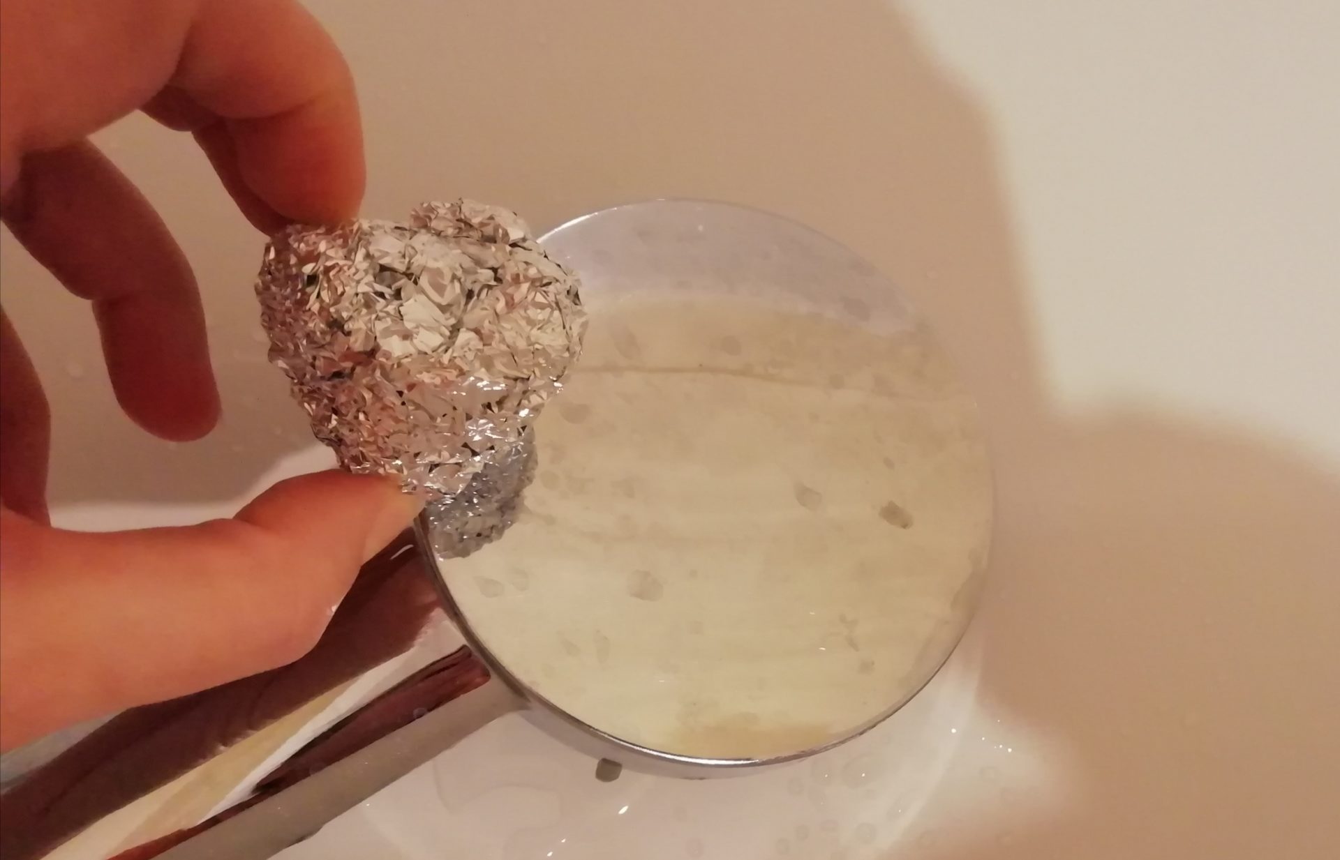 Aby usunąć plamy rdzy, wystarczy zanurzyć kulkę folii aluminiowej w wodzie i przetrzeć nią zardzewiałe powierzchnie.