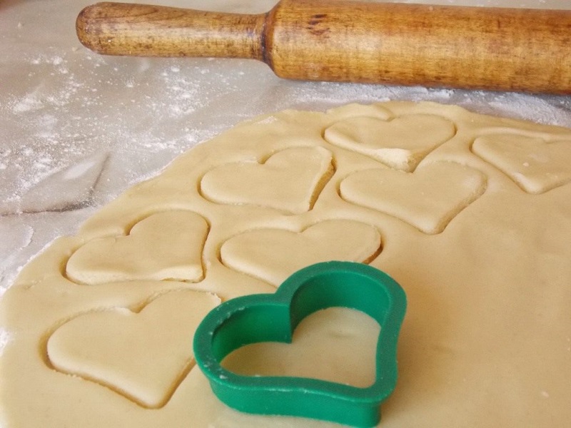 Ciasto rozwałkuj, do grubości około 2 cm. Jeżeli posiadasz foremki do ciastek możesz użyć ich, lub po prostu wykroić okrągłe kształty za pomocą szklanki.