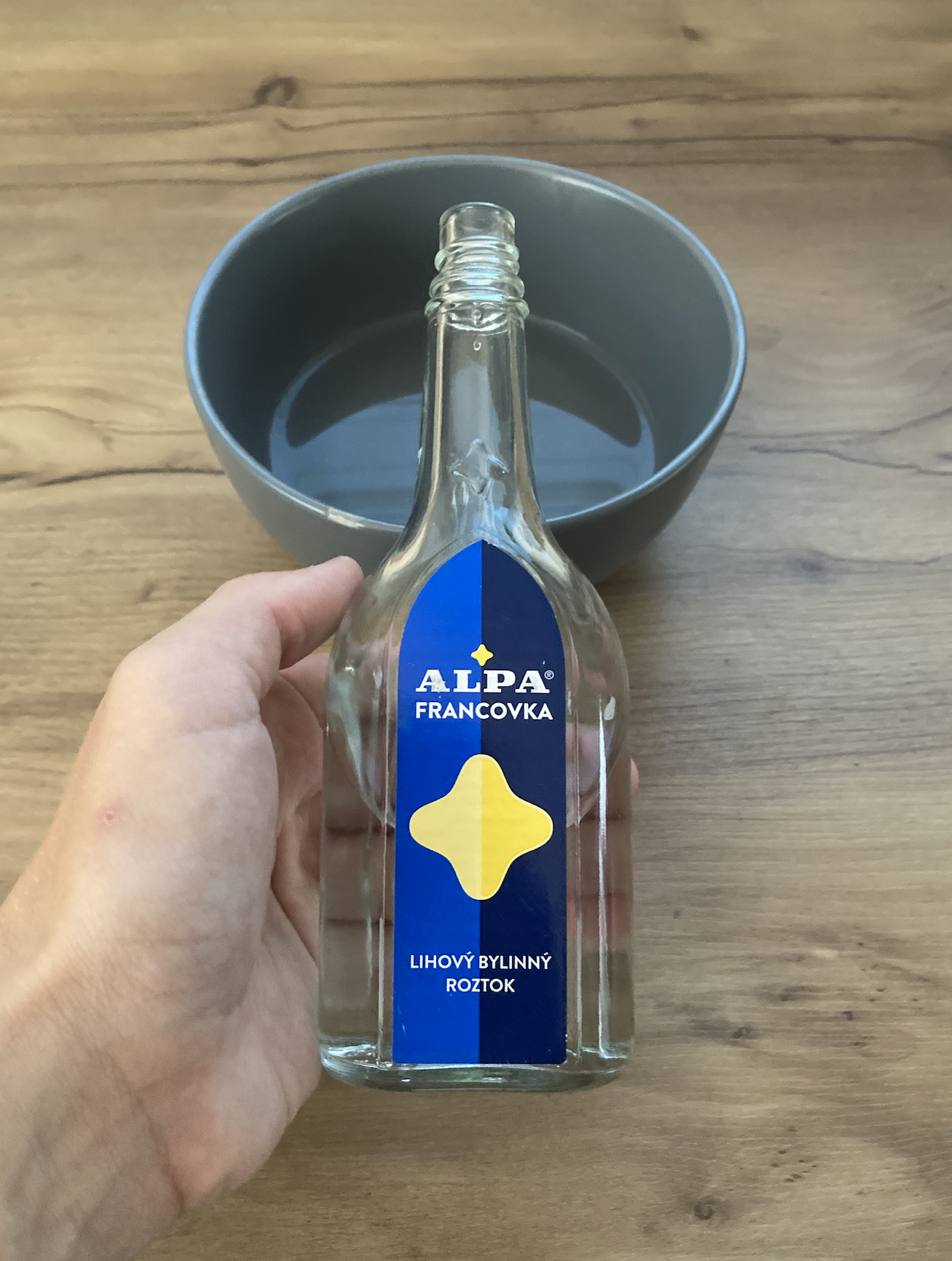 Całą buteleczkę Alpy wlej do miseczki lub plastikowego pojemnika. Dodaj około 20-30 goździków i postaw przy oknach lub drzwiach, aby zniechęcić muchy i komary do odwiedzenia Twojego domu.