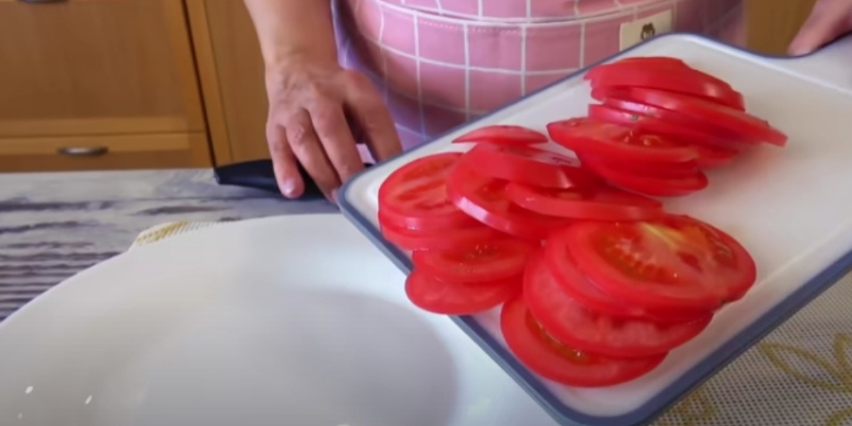 Warzywa przełóż do miski. Pomidory kroimy także w cieńsze plasterki – o grubości około 0,5 cm.