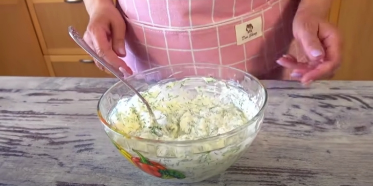 Dodajemy również drobno posiekany koperek, ząbki czosnku wciśnięte bezpośrednio do miski. Dopraw solą i czarnym pieprzem do smaku.