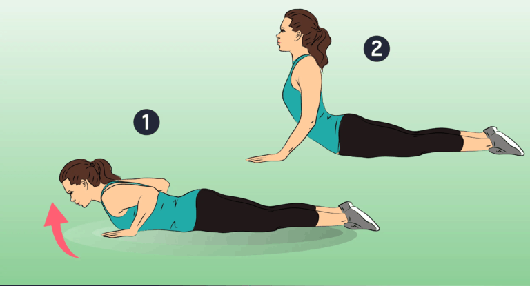 Połóż się na podłodze z twarzą skierowaną do ziemi. Swoje ręce zegnij w łokciach, na ziemi oprzyj dłonie tak, aby głowa była trochę uniesiona. Z takiej pozycji powoli, maksymalnie się prostuj. Pozostań tak od 2 do 5 sekund i ponownie wróć do pozycji początkowej. Takie ćwiczenie wykonaj 30 razy ciągiem.