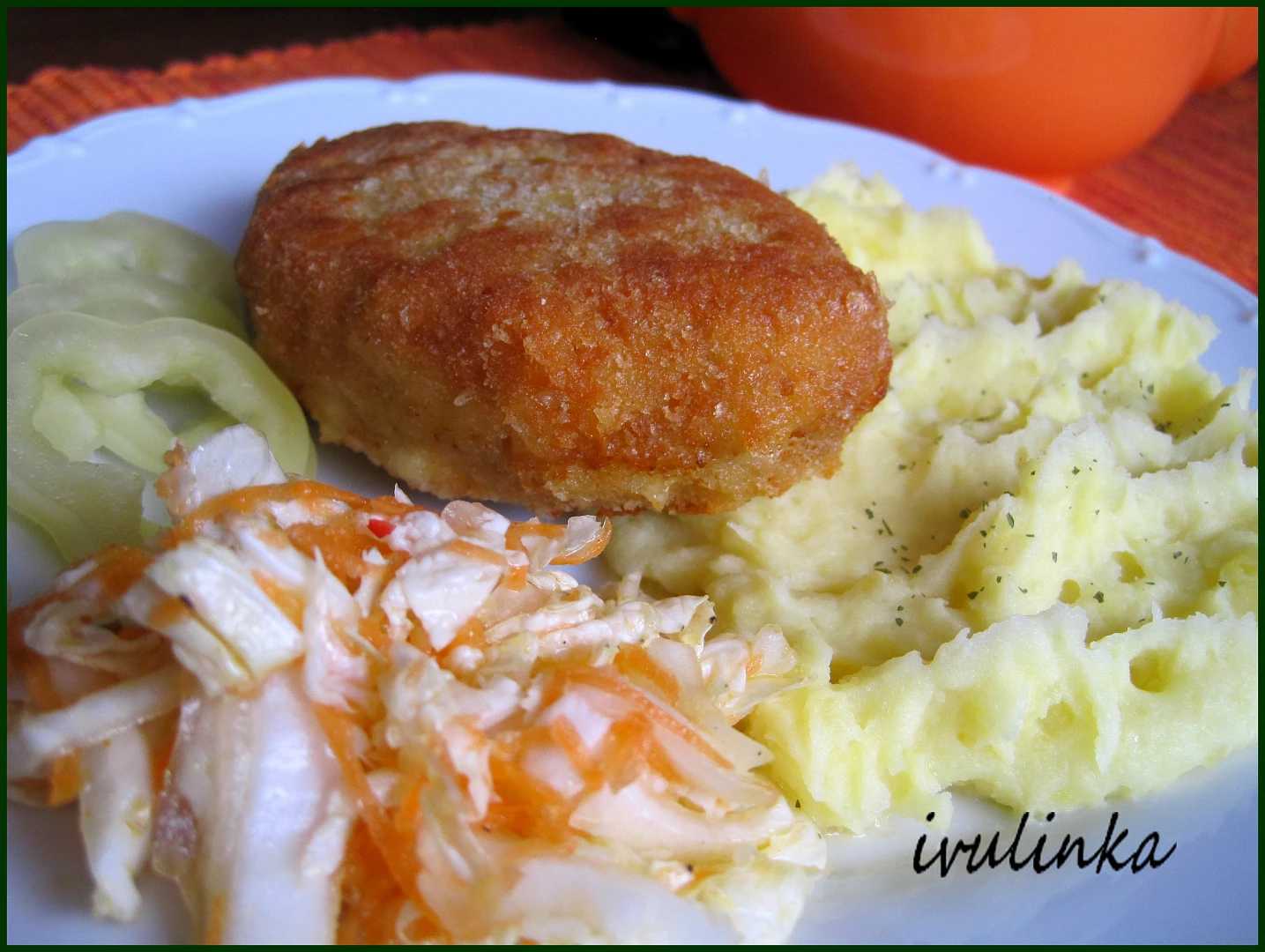 Najpierw maczamy w ubitym jajku, a następnie panierujemy w bułce tartej. Cały proces zawijania powtarzamy jeszcze raz i smażymy kotlety z obu stron na rozgrzanym oleju.