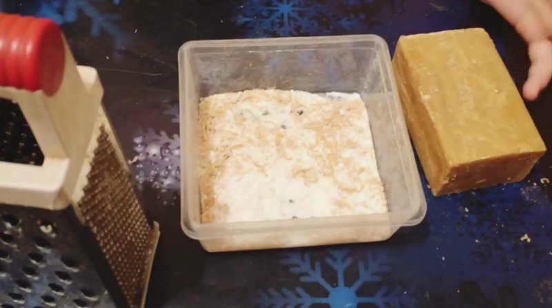 Przygotuj kostkę 72% szarego mydła, a następnie zetrzyj je na tarce o małych oczkach. Dodaj do mydła odrobinę gorącej wody, a następnie wymieszaj dokładnie, do otrzymania jednolitej masy.