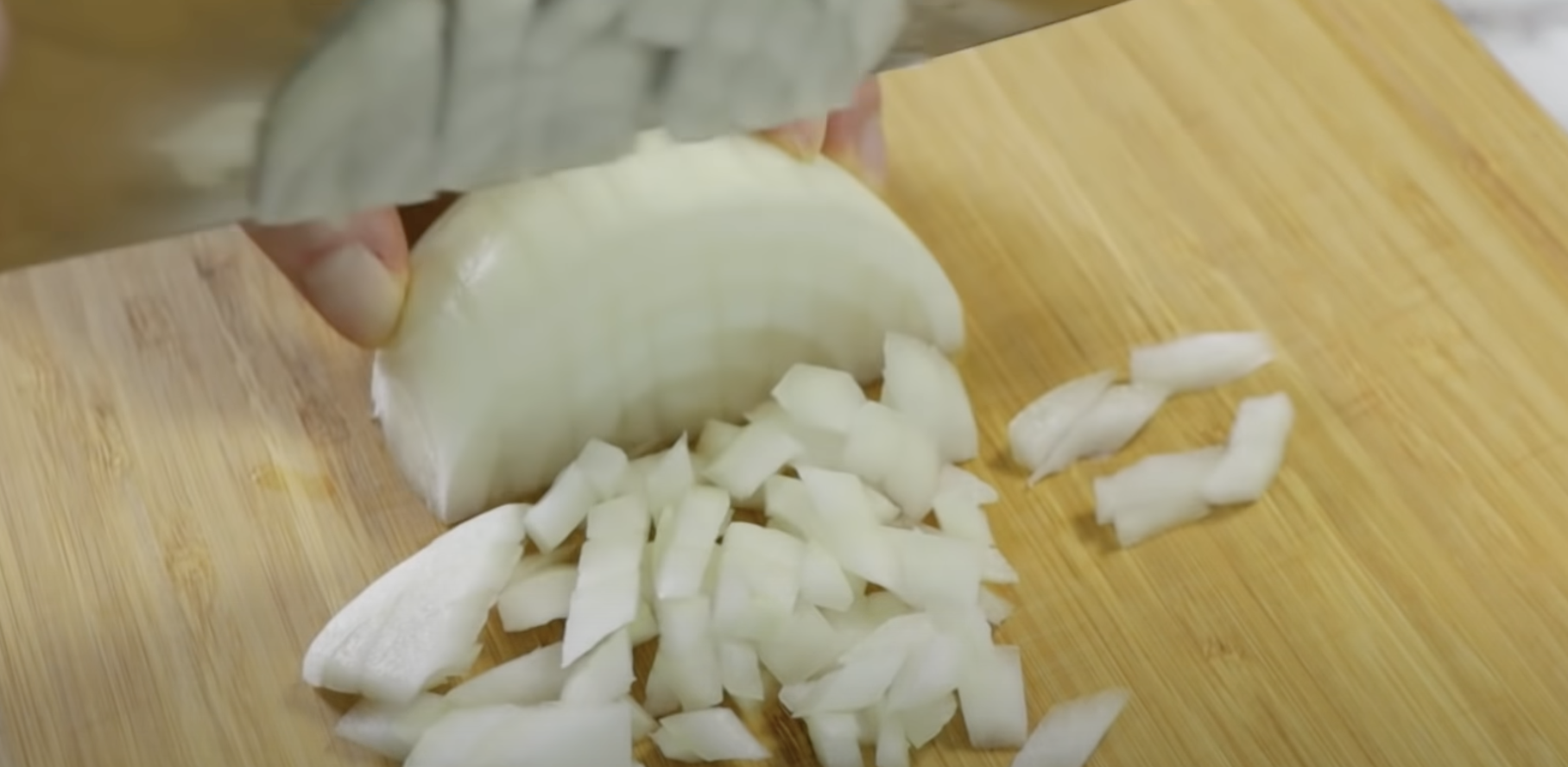 Ten czas można wykorzystać na drobne poszatkowanie cebuli, pokrojenie kiełbasy.