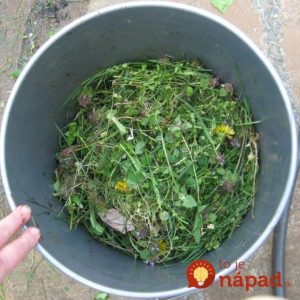 Najlepszy własny nawóz powstanie, kiedy skoszona trawa nie będzie w pełni czysta. Oznacza to, że w środku powinny występować dodatkowo mniszek lekarski lub pokrzywa. Kilka wiaderek wody należy wylać na trawę w stosunku 1:1 – tyle wody ile jest trawy.