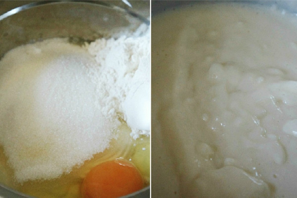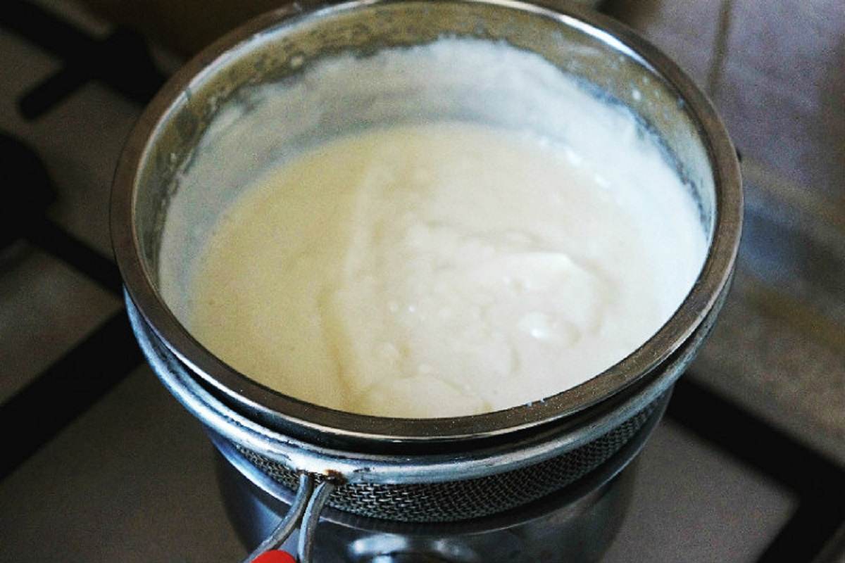 Dodaj mąkę i wanilinę. Mieszankę jajek i śmietany włóż do kąpieli wodnej, ciągle mieszaj, aż masa zgęstnieje.