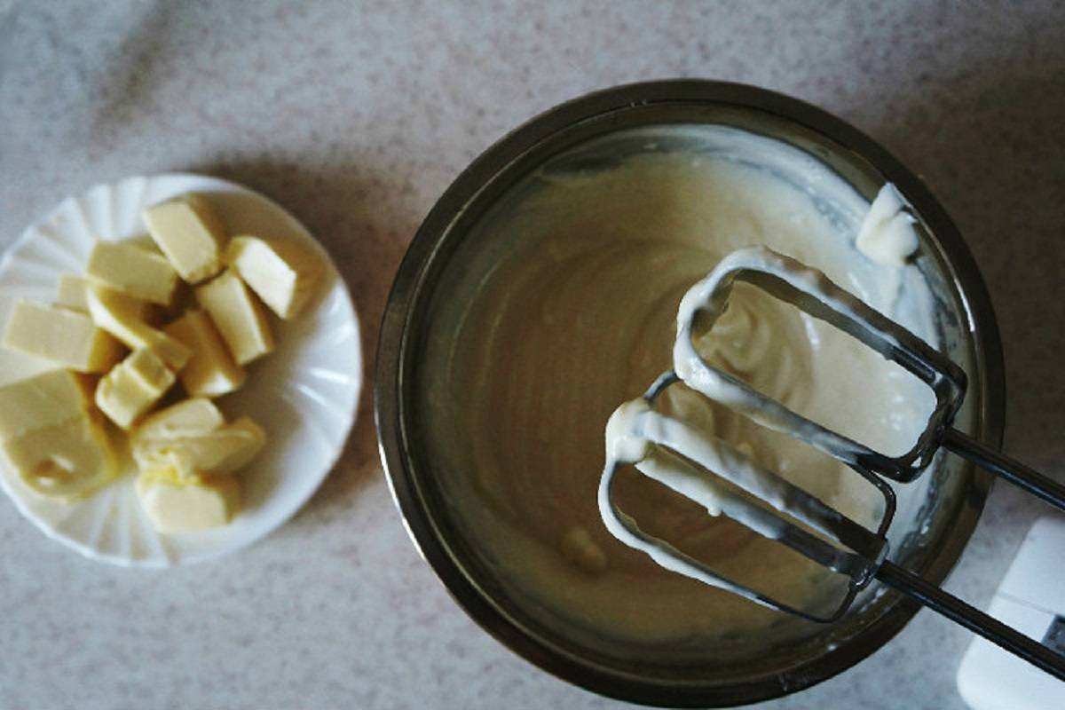 Ubij masło trzepaczką. Teraz wystarczy połączyć je z ostudzoną mieszanką.
