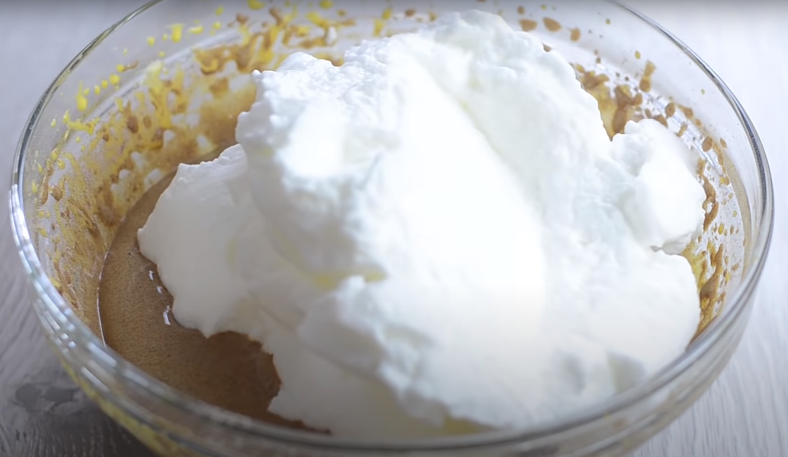 Aby przygotować ciasto, mieszamy mąkę z proszkiem do pieczenia i kakao. Żółtka ubijamy z cukrem, dodajemy do nich wodę i przygotowane wcześniej suche składniki. Mieszamy i do powstałego ciasta dodajemy ubitą na sztywno pianę z białek (mieszamy delikatnie szkatuła lub łyżką, aby piana za bardzo nie opadła).