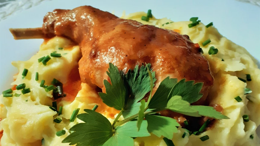 Królik marynowany według starożytnej receptury jest cudownie soczysty i delikatny, a słodko-kwaśny sos świetnie do niego pasuje.