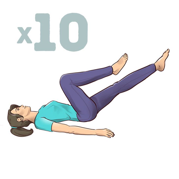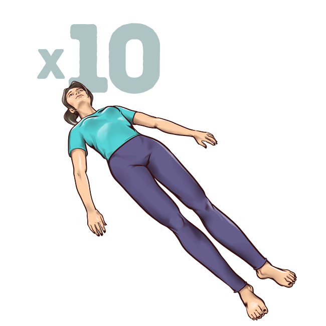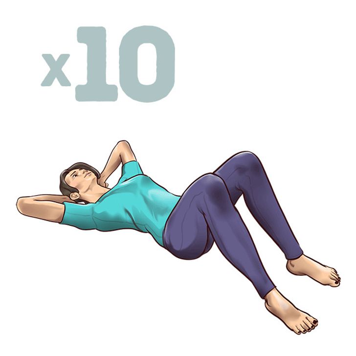 Leżenie z podniesionymi ramionami i klatką piersiową, powtarzanie 10 razy.