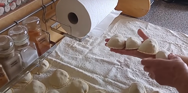 Warto również sprawdzić czy pierogi nie rozkleiły się w poszczególnych miejscach. Jeśli tak należy docisnąć palcami szczeliny, aby zapobiec wypłynięciu farszu podczas gotowania.