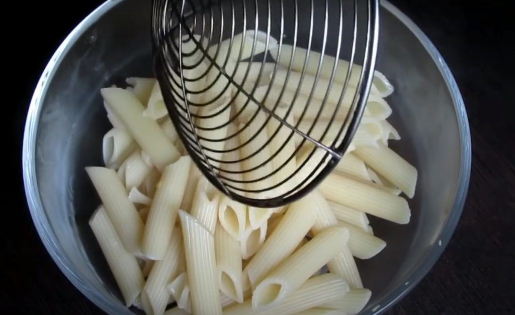 Do garnka wlej wodę, dodaj łyżkę oleju, sól i zagotuj. Wkładamy do niego makaron. Gotuj zgodnie z instrukcją. Odcedź wodę i przełóż makaron do miski.