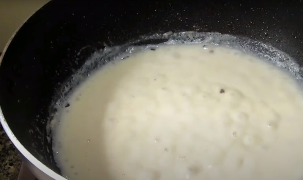 Wyciągnij usmażone warzywa i rozpuść masło na tej samej patelni. Dodaj 2 łyżki mąki pszennej. Wymieszaj. Wlej około pół szklanki mleka i dokładnie wymieszaj trzepaczką.