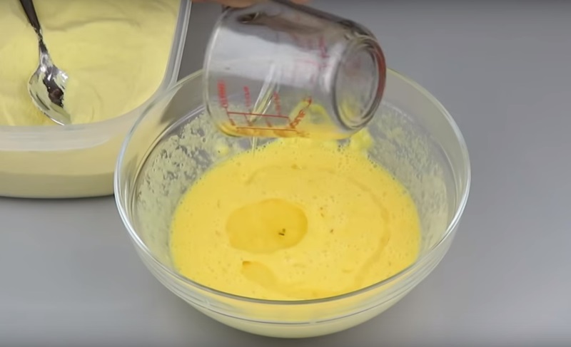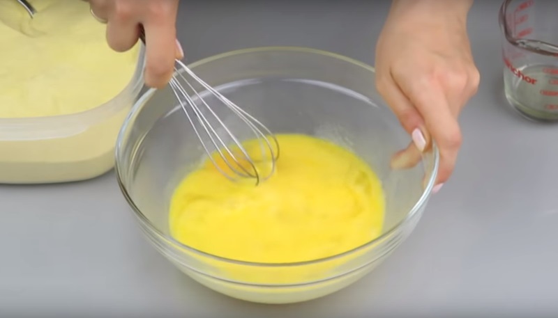 Jajka są kluczem do udanego ciasta, więc ubij je bardzo dokładnie. Następnie dodaj do nich kaszę mannę i zamieszaj. Odstaw na 5 minut na bok.
