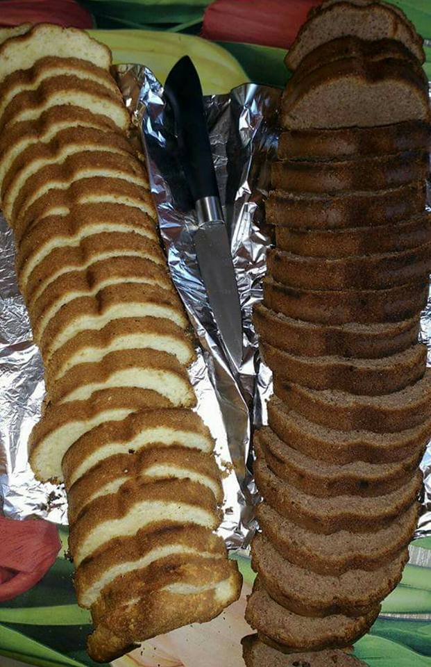 Ciasto wlej do drugiej formy i piecz oba w temperaturze 180 stopni około pół godziny. Po upieczeniu wyjmij ciasta z foremki i pozwól im ostygnąć. Schłodzone pokrój w cienkie „kromki”.