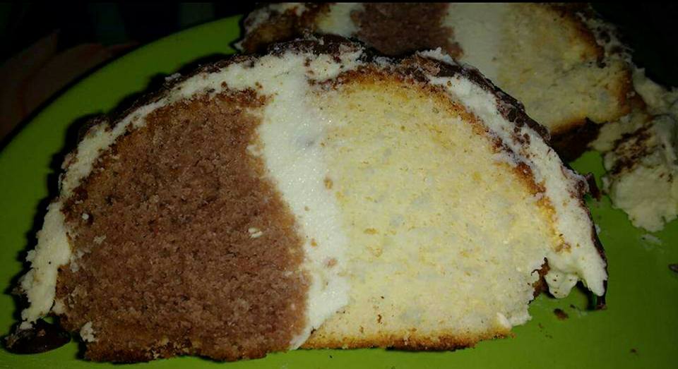 Mąkę przesiej i wymieszaj z proszkiem do pieczenia. Delikatnie wymieszaj białka z żółtkami i dodaj mąkę. Połowę jasnego ciasta wlej do wysmarowanej np. masłem i posypanej odrobiną mąki blachy. Do reszty ciasta dodaj kakao i wymieszaj.