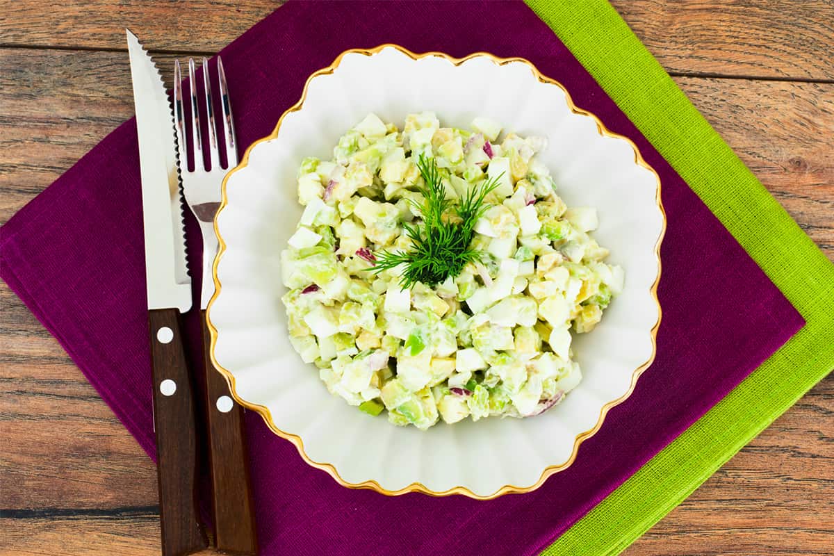 Delikatna sałatka „Mewa” z 5 składników. Prosta, szybka i przepyszna.Znika ze stołu w kilka chwil