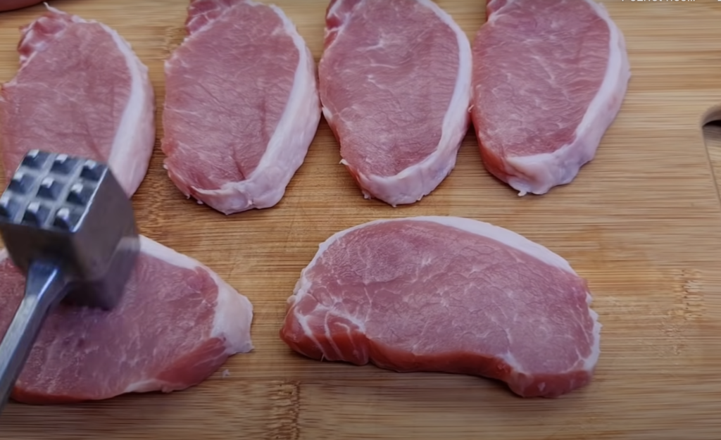 Jajka ugotuj na twardo. Mięso pokrój w plastry i ubij tłuczkiem.