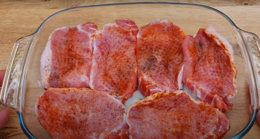 Dopraw solą oraz pieprzem. Cebulę pokrój i ułóż na dnie naczynia żaroodpornego. Na warstwie cebuli umieść mięso.