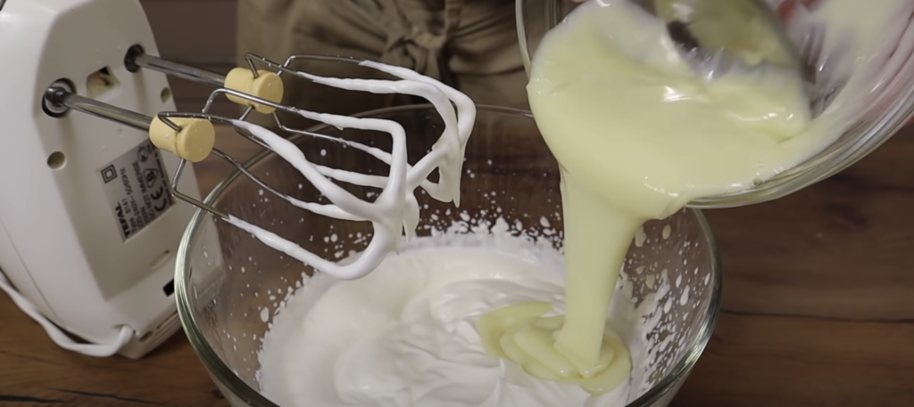 Stopniowo mieszaj mleko skondensowane z bitą śmietaną. Smakuj podczas mieszania. Jeśli uważasz, że lody są zbyt słodkie, nie musisz używać pełnego mleka ani dodawać mleka niesłodzonego.
