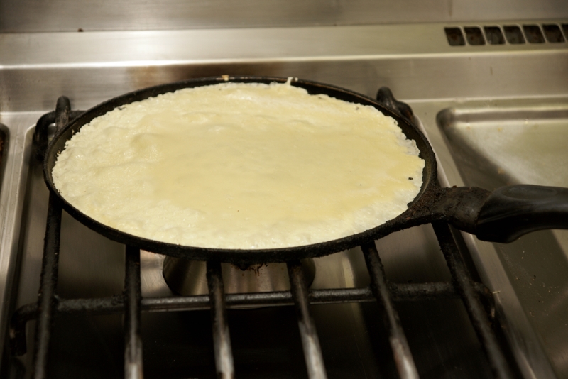 Tak przygotowane ciasto smaż na rozgrzanej patelni. Naleśniki najsmaczniejsze wychodzą, gdy użyjesz do smarowania patelni masła.