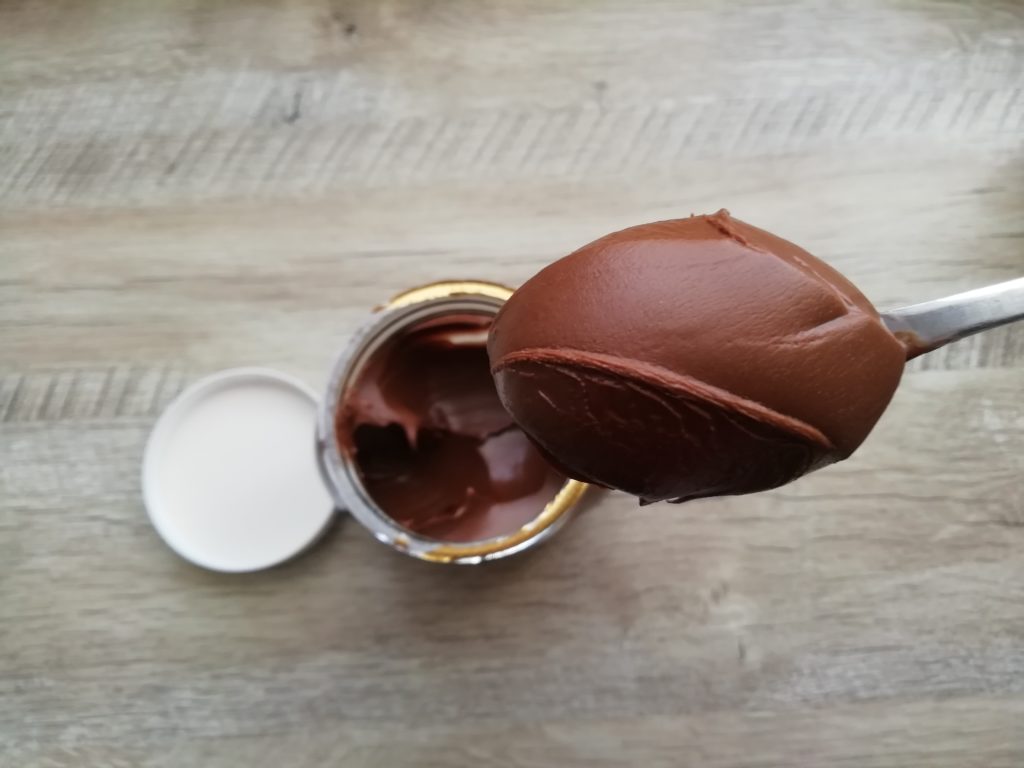Krem nałożyć na ciasto w formie, wyrównać szpatułką. Wkładamy do lodówki. Dodaj nutellę i olej do małej miski. Wymieszaj łyżką.