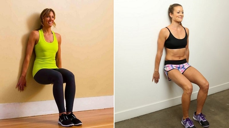 Krzesełko jest bardzo popularnym ćwiczeniem, które w prosty sposób pomaga wzmocnić mięśnie ud i pośladków. Do jego wykonania stań przy ścianie w lekkim rozkroku, oprzyj się o nią plecami i barkami, a następnie zsuń górną część ciała po ścianie, jakbyś próbowała usiąść na niewidzialnym krześle. Przez cały czas wykonywania ćwiczenia twoje kolana powinny być ułożone pod kątem 90 stopni, a uda równolegle do podłogi, aby utrzymać optymalne napięcie nóg. Staraj się pozostać w tej pozycji jak najdłużej i z dnia na dzień stopniowo wydłużaj czas trwania ćwiczenia. Optymalnie „krzesełko” należy wykonywać przez 60 sekund.