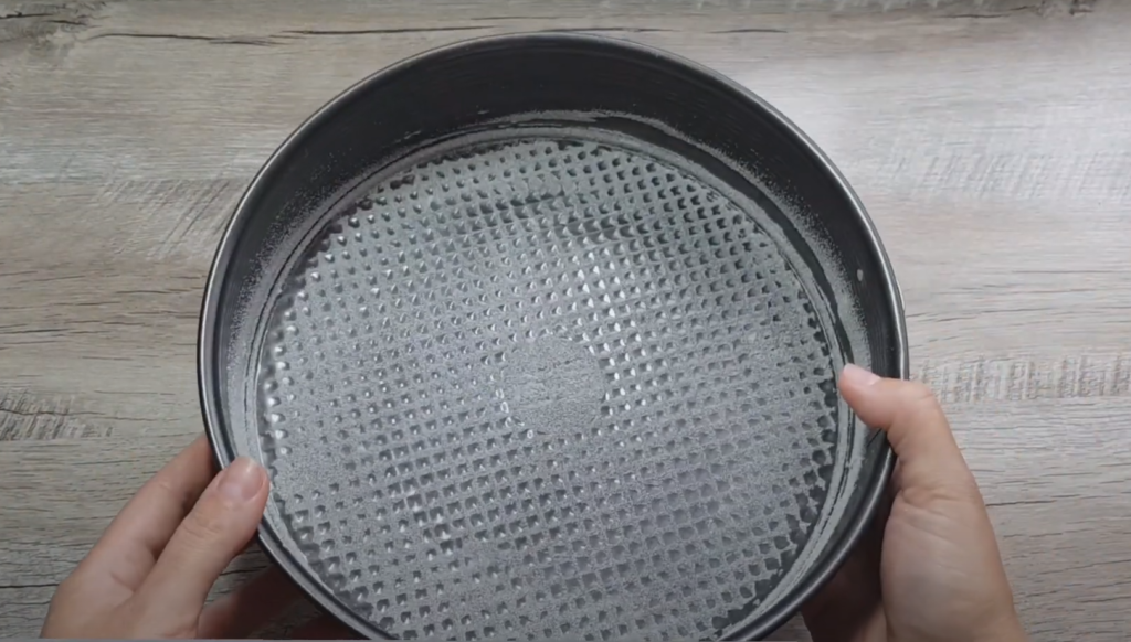 Wyłóż papierem dno formy o średnicy 18 cm, a boki posmaruj masłem. Nałóż warstwę masy i wygładź.