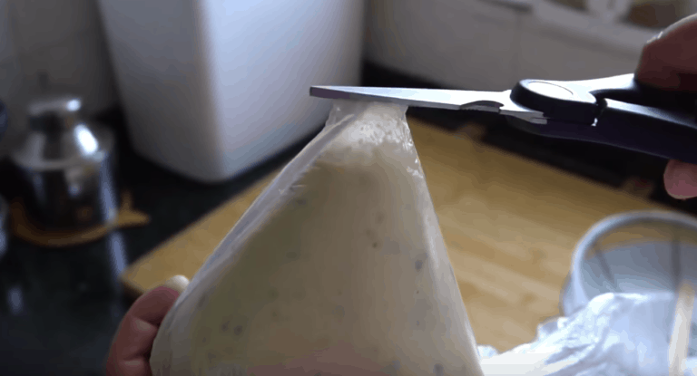 Umieść ciasto w czystym woreczku foliowym. Odetnij jeden rożek.