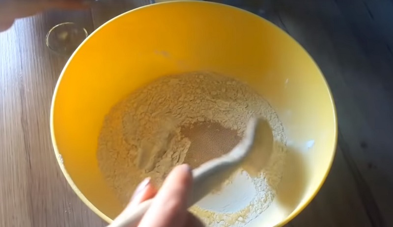 Dokładnie przesiej mąkę, aby stała się puszysta. Następnie połącz ją z solą oraz suchymi drożdżami i dokładnie wymieszaj. Powoli wlewaj wodę małymi partiami. Mieszaj, dopóki ciasto nie będzie miękką i jednolitą strukturą.