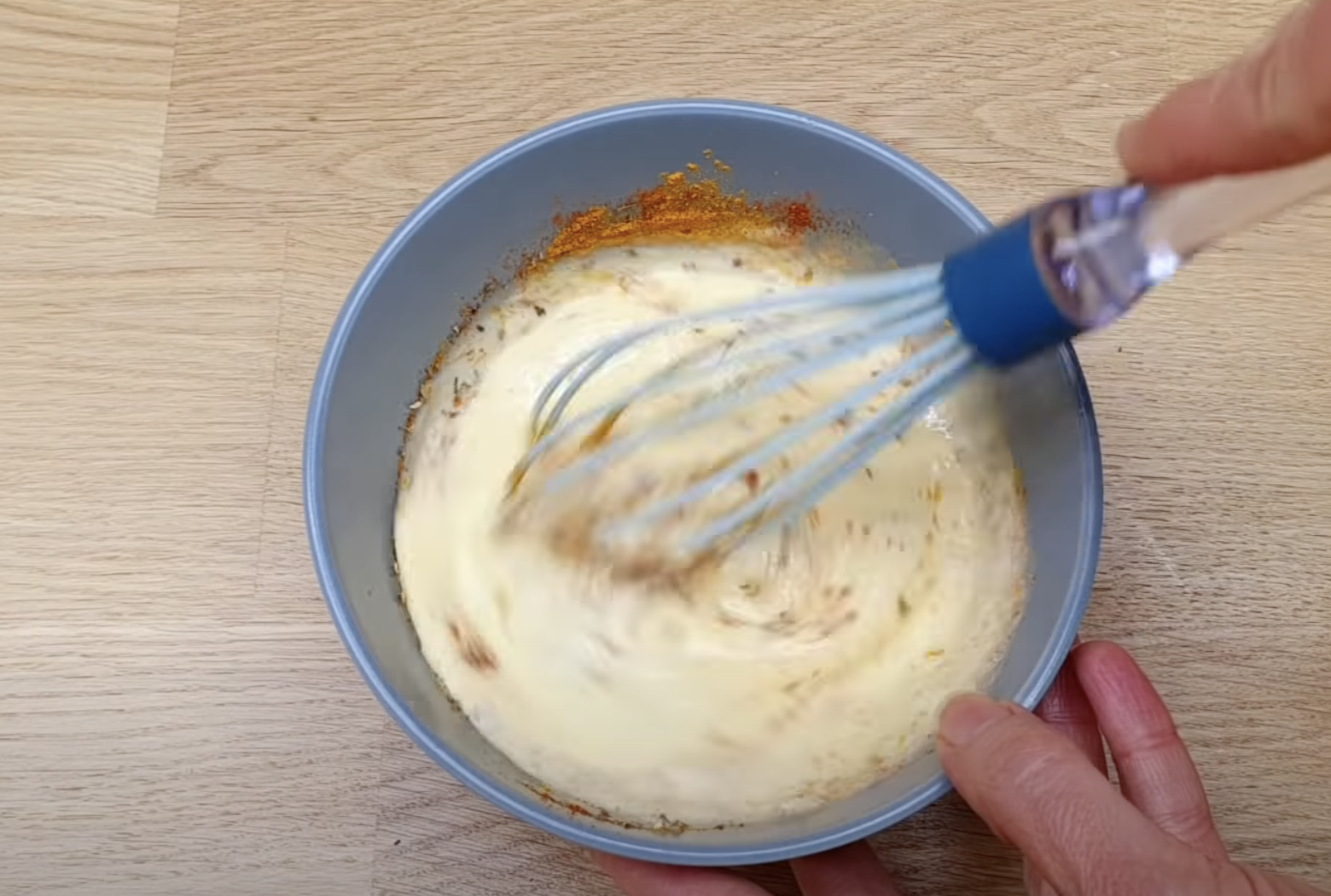 Wymieszaj i wlej całość do naczynia z kurczakiem. Pamiętaj, że przyprawę do gyrosa możesz także wykonać samodzielnie z przypraw dostępnych w każdym domu. Sprawdzi się tu mieszanka ziół i czerwona papryka.